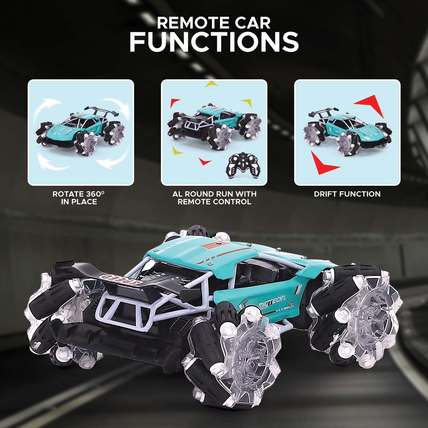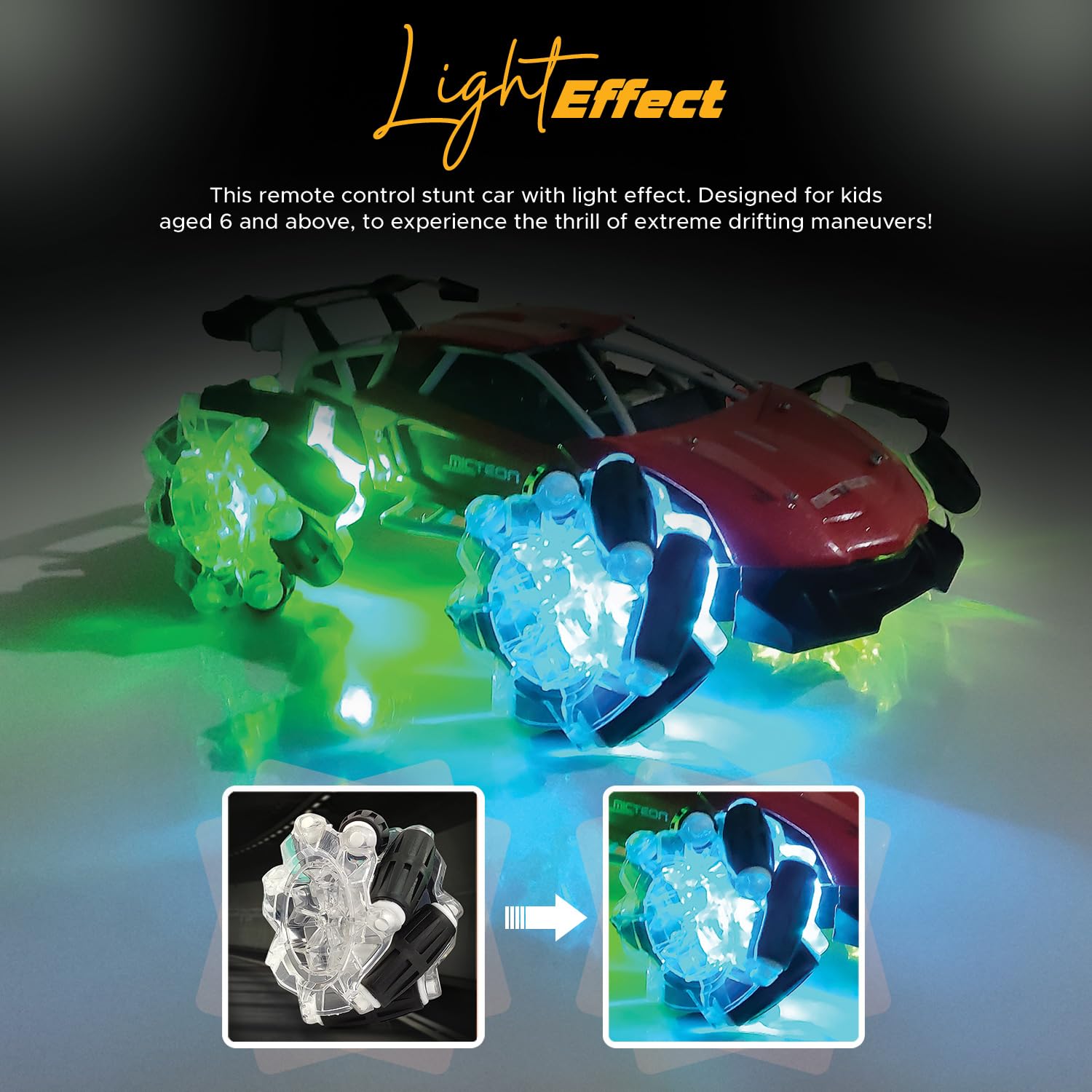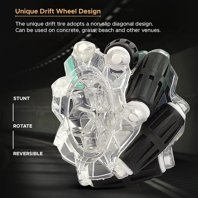 - Durable Build with Transparent Wheels: Designed for durability, the transparent mechanical wheels not only add style but also improve traction, ensuring enhanced performance and stability during stunts or regular play.